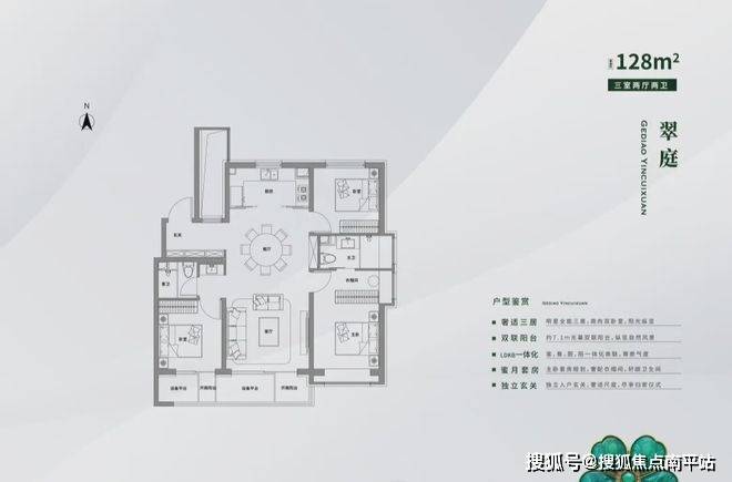 翠境 | 高层 建面约117㎡三室两厅两卫。✅✅ 格调隐翠轩 售楼处电话400-159-8559转5555 [专人接听]