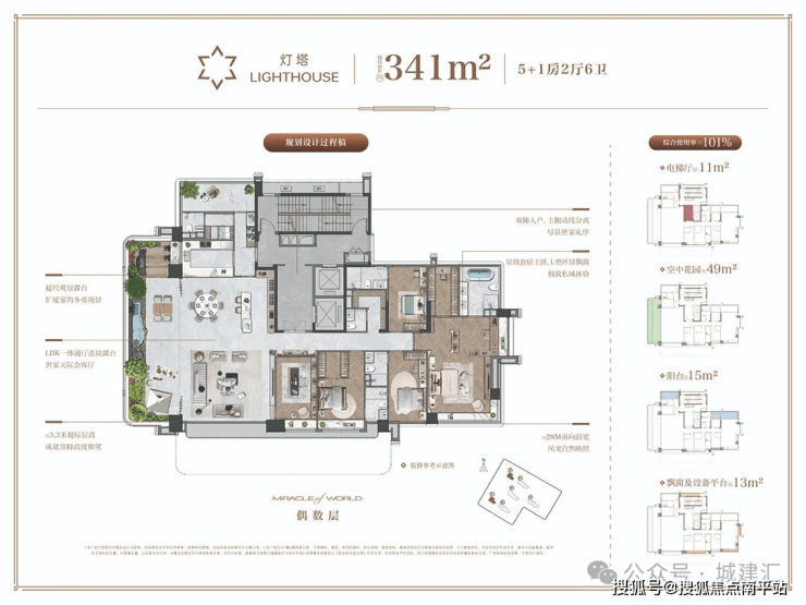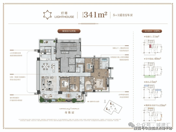 建面约341㎡顶序藏品 可媲美传统约450㎡居住体验 。户户拥有 双独立电梯厅 还原墅级归家礼序。