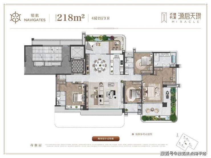 建面约221㎡户型 ,类独梯入户+约6㎡电梯厅,给足归家仪式感;约91㎡LDKG无界社交厅,容纳峯层生活;享南北环绕式双空中花园或独享南向超大空中花园,让自然成为生活的底色。
