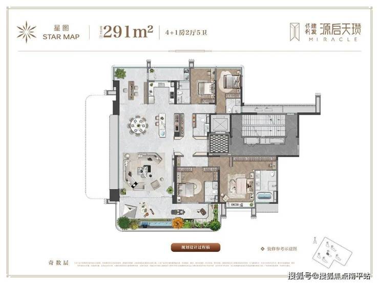 建面约341㎡户型 ,做到一层一户,约3.3米的层高,户户拥有双独立电梯厅;LDKB国际方厅,270环幕景观面,延伸至空中露台将达到约10.6米奢阔尺度;约60㎡奢阔主卧套房,转角飘窗带来270°无遮挡景观视野、独立步入式衣帽间、星级酒店标准配备卫浴五件套。