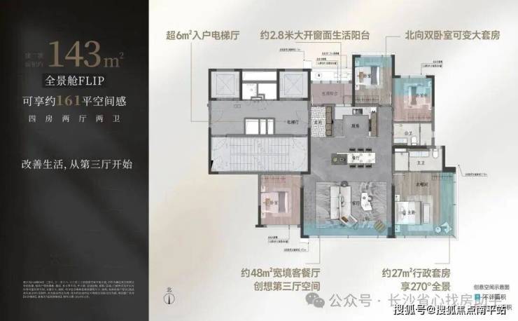 【建面约143㎡南厅户型图】建面约143㎡可享161㎡空间感