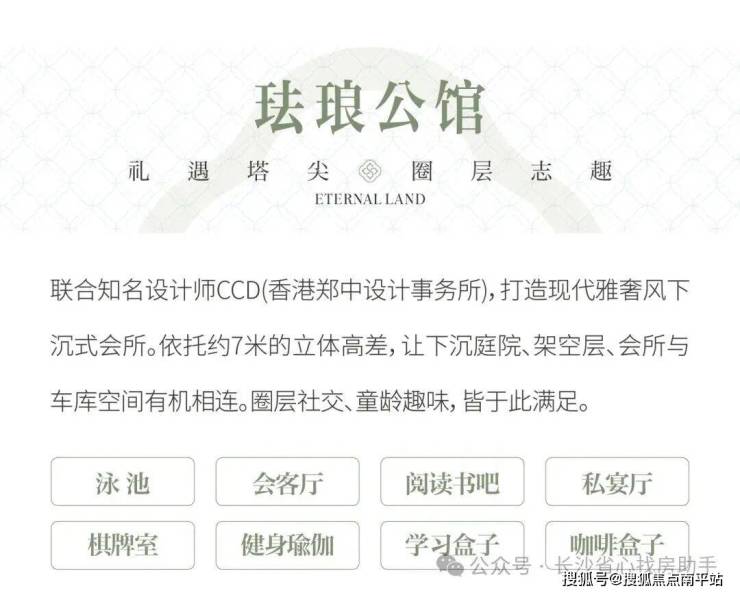 ·公园文体簇拥——项目紧邻南城大型公园 - 沙湾公园 (占地面积约440亩) 、长体运动公园、西侧约2.3公里长圭塘河生态公园、步行可达“两馆一心”,湖南省体育馆、湖南省网球中心、长沙市群众艺术馆。