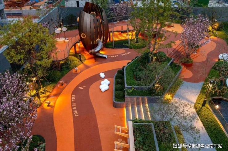 1.无界森林园境:璀璨学府从人居实际出发,匠造公园式学府生活空间,整体打造1轴2核6组团,其中“1轴”为贯穿社区的园林中轴,2核为约8000㎡中央园林景观及社区入户核心场域,6组团为根据建筑排布的六大主题宅间花园,设计初衷为让社区的每一户业主皆可在归家后享受到走出喧嚣,回归安逸的氛围中,并形成社区内游学探索、美好延伸的完整闭环
