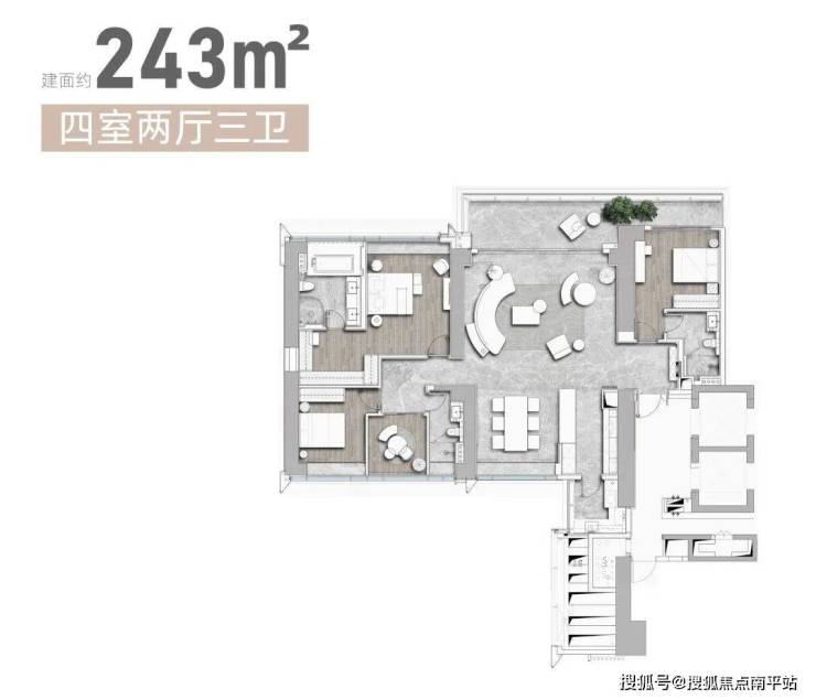 243㎡户型:作为顶级豪宅,价格高达1650-3000万/套。