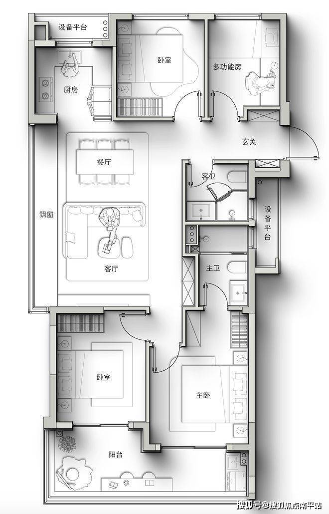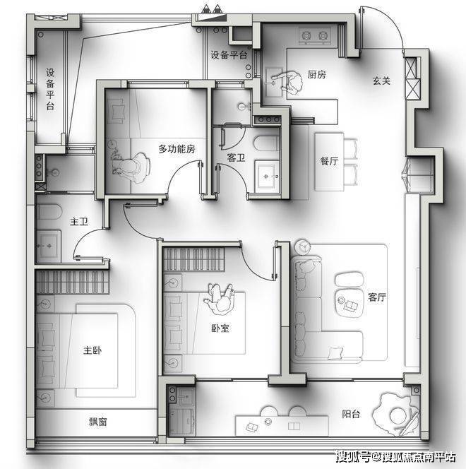:做到了三房两厅两卫,来电咨询☎️☎️400-159-8559转接7777【☎营销部电话已认证】入冰箱 ,空间利用合理。餐客厅一体,连接跑道式阳台,采光和视野俱佳。朝南次卧与阳台连通,小房间也能满足居住需求,主卧带卫生间和飘窗 。