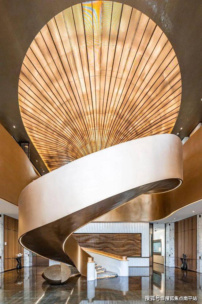 耗时1000小时雕刻拼接的6米高生命之树,极致线条美学的旋转楼梯,360°都有面。