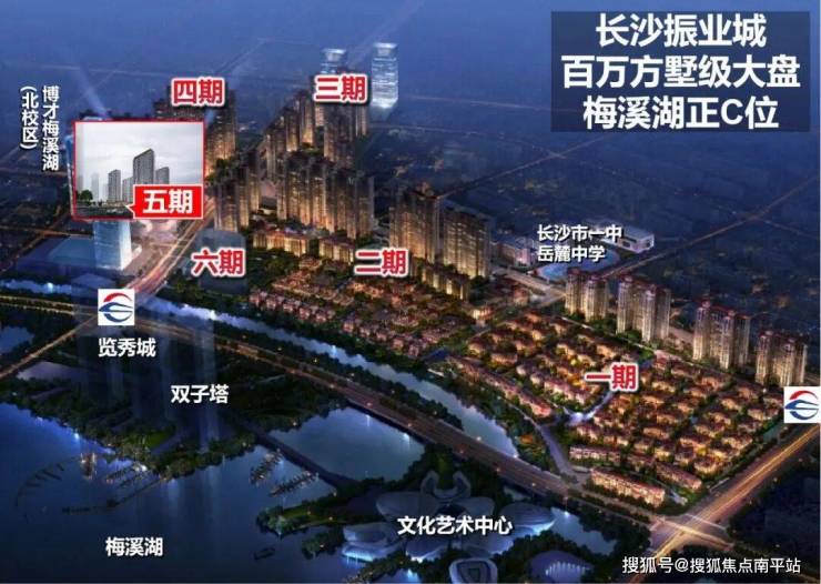 在政府大力布局湘江新区之下,以及梅溪湖一、二期、三期、四期的融合的利好,已带动更多的人口入驻区域。振业城四期位于梅溪湖北岸,映日路与临水路西北角。处于梅溪湖桥头堡位置,区位优越。