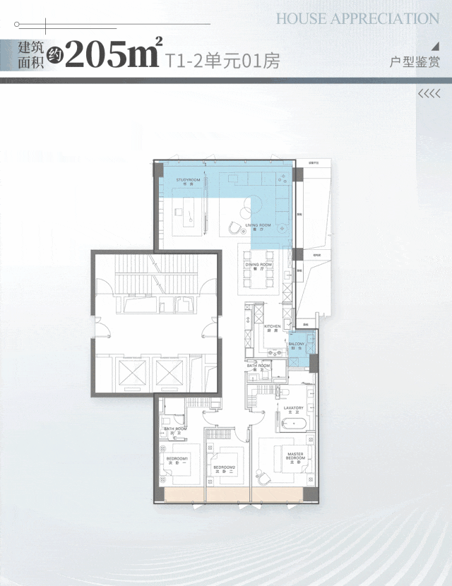 大尺度宽厅设计,以洄游动线突破固化活动场景。整体空间开阔气派,生活场景切换自如,使户型使用率更高。