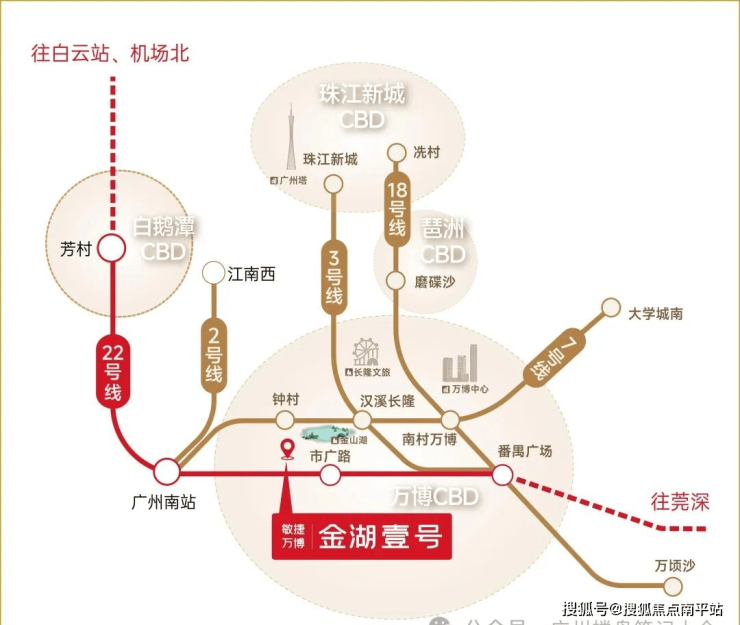 ◎【双地铁交汇】22号线(已开通)及26号线(规划中)双地铁交汇,约800米市广路地铁站, 1站番禺广场、2站万博中心,3站琶洲CBD、4站珠江新城。