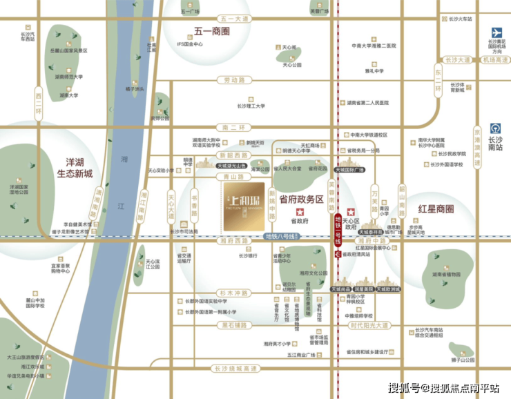 长沙南城,省府板块核心, 天城上和珺与湖南省政府隔路相望。
