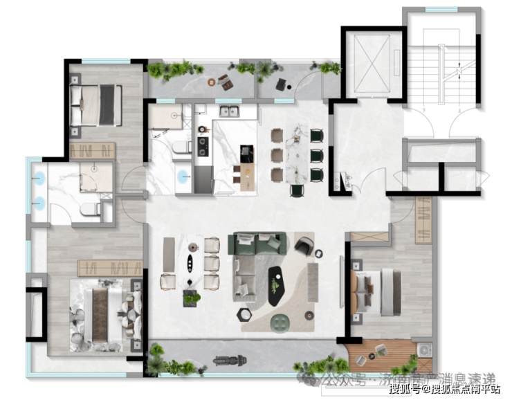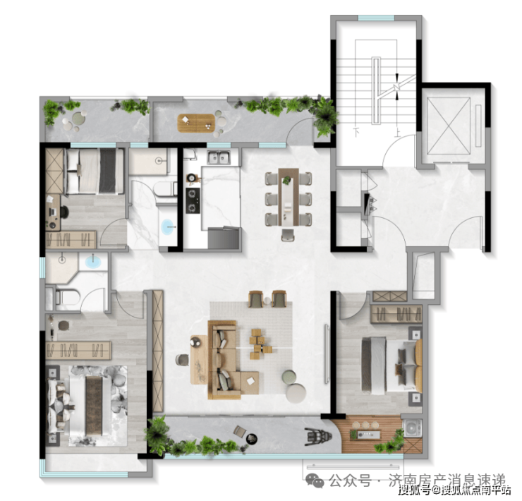 167平户型为两梯两户设计,私享电梯厅,综合得房率94%左右