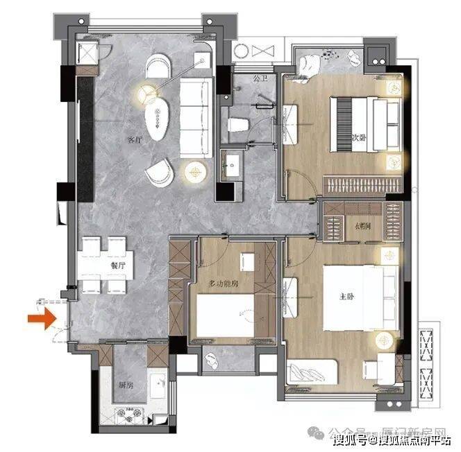 阔尺宽厅│约35m²家庭生活主场,三代各有所享