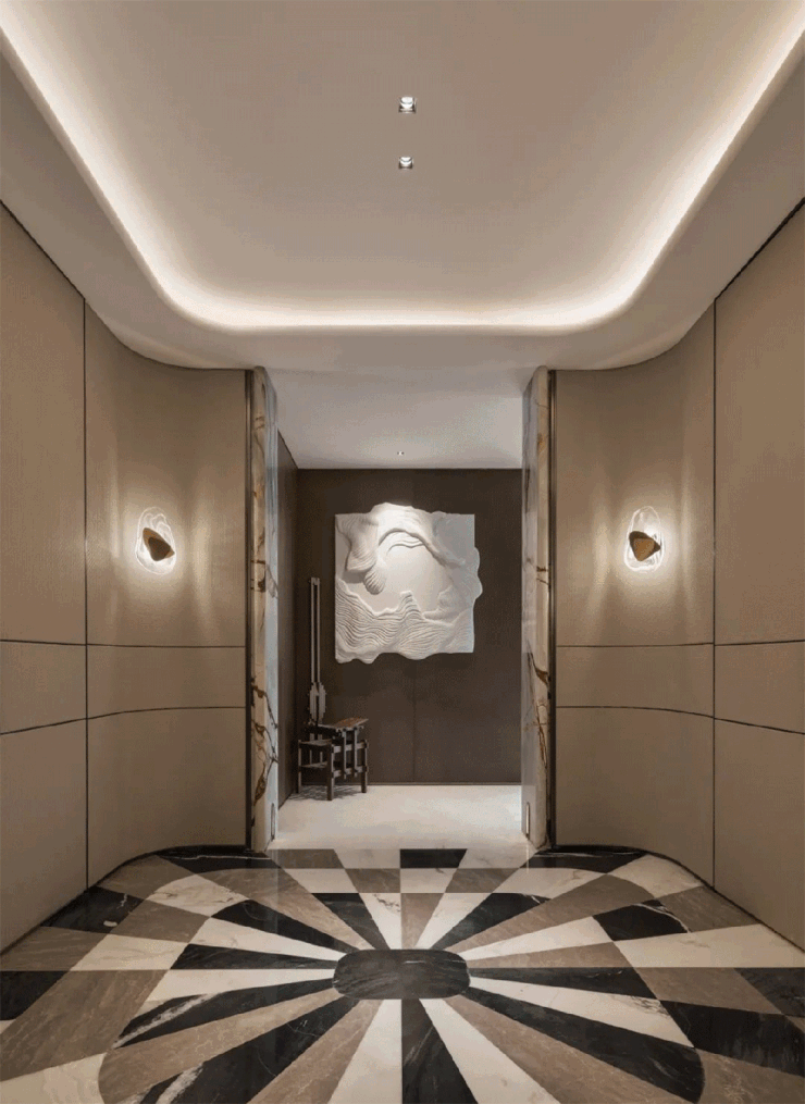 玄关与过厅之间的连接与穿梭,邀请人们对其探索与驻留,开门即可感受温暖舒适尊贵的归家体验。午后归家一刻,邂逅精致艺术寓所,即刻上映艺术与静谧的对话。
