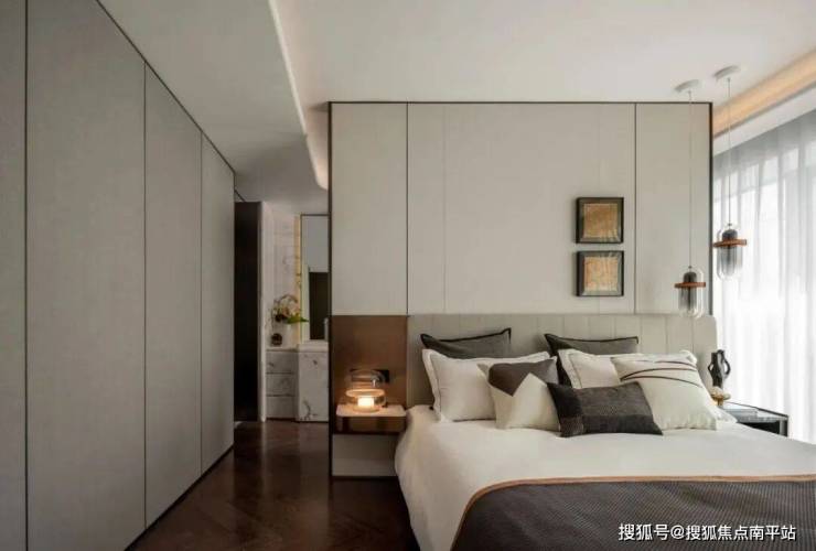 优雅由心生,次卧延续了米色与棕色的醇厚基调,以简约的肌理勾勒出精致的细节,塑造出放松、舒适的场域气质。