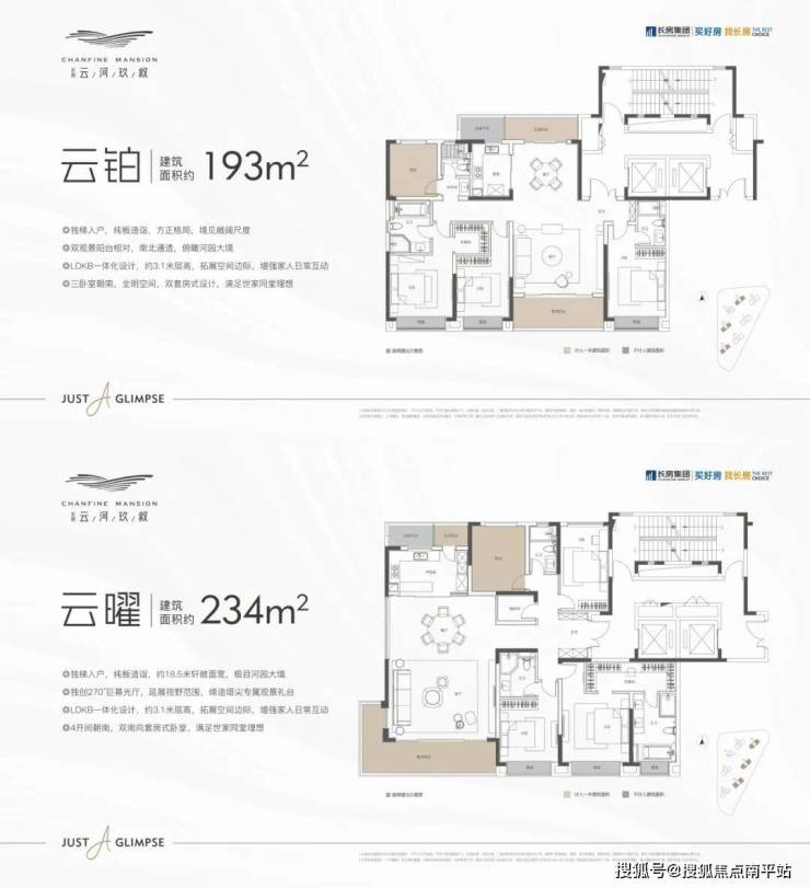 长房云河玖叙,2023年“广厦奖”入围作品,长房集团首著“云河系”纯粹大平层,项目总建面约8万方,共7栋高层住宅,规划268席建面约193-407㎡纯粹河园大宅。
