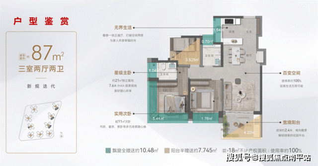 于城区,无论是新房二手房,能够做到标准三房两卫的户型,往往需要95㎡左右的建筑面积,此次, 海德理想城带来的不仅是城区唯一的90㎡以下新规产品,“87㎡标准三房两厅两卫”的户型,更以约100%的使用率、高达18㎡的赠送面积,助力年轻家庭轻松安家东莞城市核心。