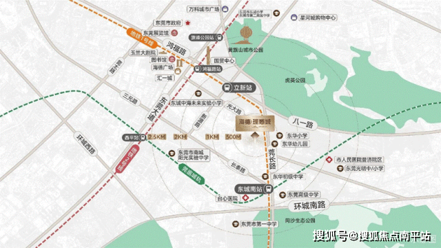 项目与东莞地铁1号线立新站直线距离仅约600米,广惠城际东城南站亦近在咫尺,同时紧邻鸿福路、八一路、环城路等城市主干道,未来从项目出发,无论选择轨道交通还是自驾出行,海德理想城皆以“双轨+路网”的立体交通优势,紧紧把握住中心生活的通达与从容。