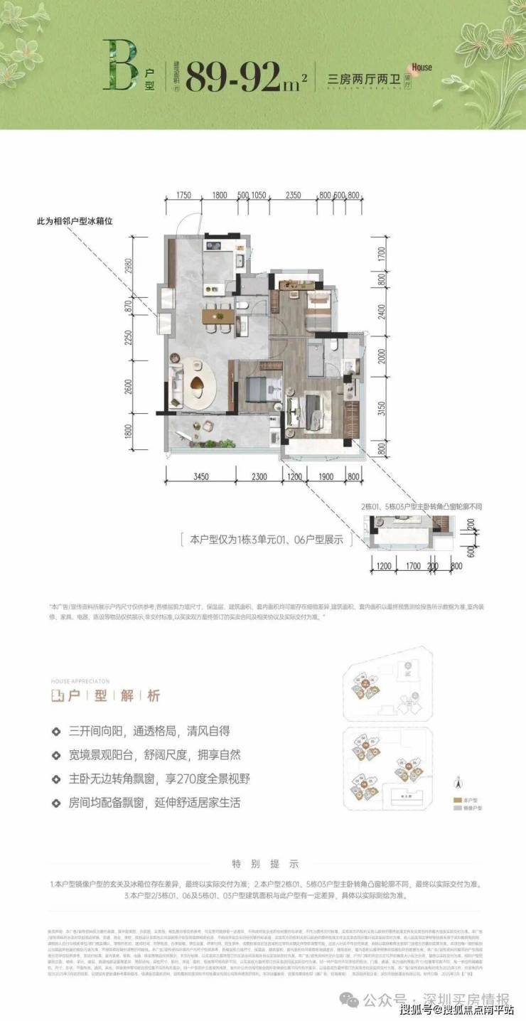 首次推首 北地块1栋3单元,约80-92㎡ 3房,共195套,新规使用率高达96%-105%!