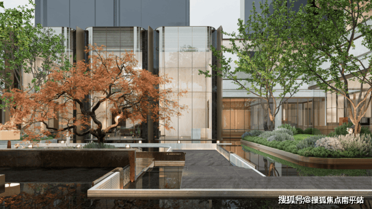 润府Ⅱ期的景观设计以“双河公园”为基底,东侧紧邻330亩双河公园,内部则通过“一轴两环多园”的布局,将自然生态渗透至社区每个角落。设计团队以“光影走廊”为主轴,串联起入口水景、林下会客厅、全龄活动区等功能空间,并利用叠级水景、镜面水池等元素,营造出步移景异的沉浸式体验。