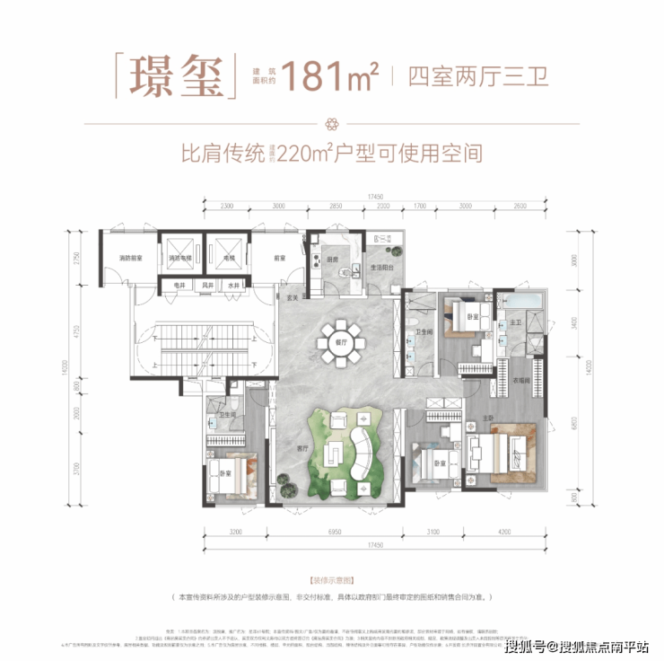 建面约181㎡ :足以匹敌旧规220㎡的“平层墅居”。