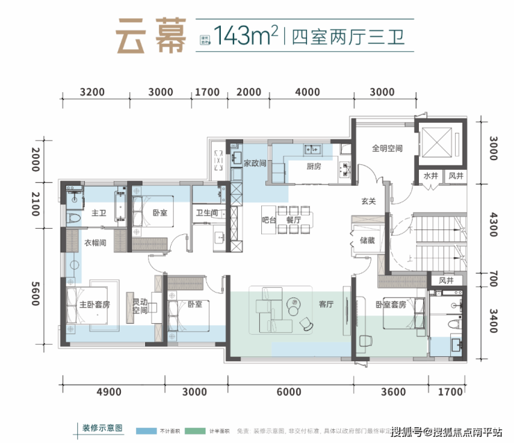 这也是项目的首开户型,↓143平户型图: