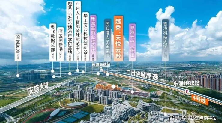 越秀天悦云啟位于国家级规划的先行区庆盛,紧邻地铁,毗邻港科大(广州),并处于AI产业区附近。