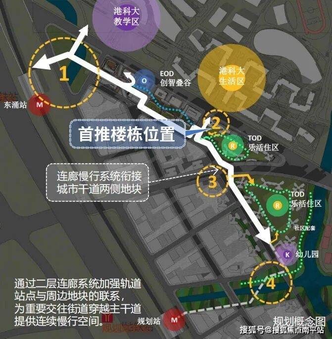 串联港科大(广州)校区、产研园区、东涌地铁站、小区幼儿园和河涌公园,形成一个无边界的“环港科大”生活圈,无惧风雨,步行可达。