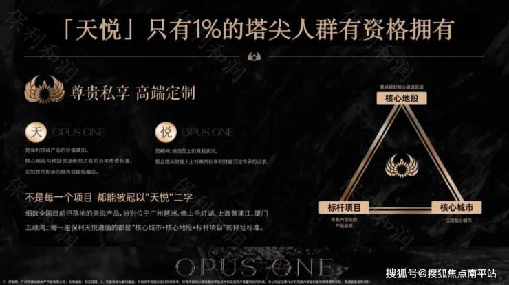 属于保利顶序产品系,全国仅有15座天悦,“天悦”属于“TOP”系,是保利超越以往全系列产品线的收藏级作品,保利在全国布局了超900个项目,仅1%塔尖人群可拥有“天悦”。