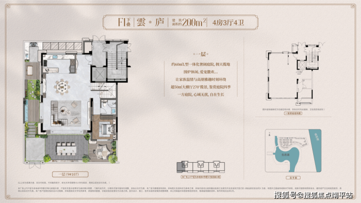 项目社区以“空中院”与“院墅”两大组团划分,形成了区域内最纯粹的高端低密住区。其中, 叠拼产品所在的院墅组团,容积率低至约1.0,构建了一个纯粹的别墅社区。在这里,没有高低配的混居感,每一户业主都能享受到均质、纯粹的圈层氛围和私密性保障。