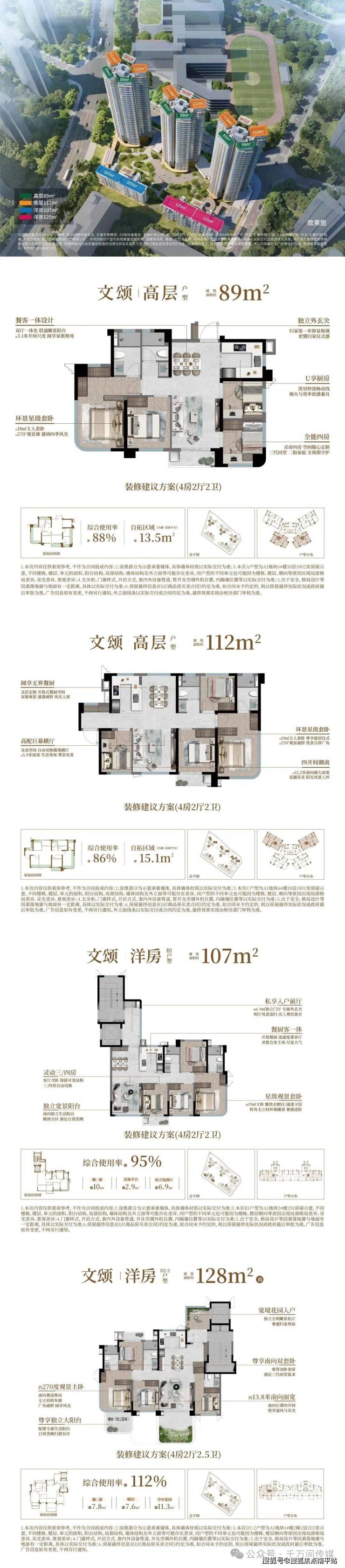 中交文澜天玥,项目前身为J2025P01地块,楼面价约1.62万/㎡。项目分两个地块打造,户型跨度较大,从89㎡的高层到205㎡的叠拼,能满足刚需到改善的不同需求,而且综合使用率约88-112%,细节设计也比较贴合日常居住。
