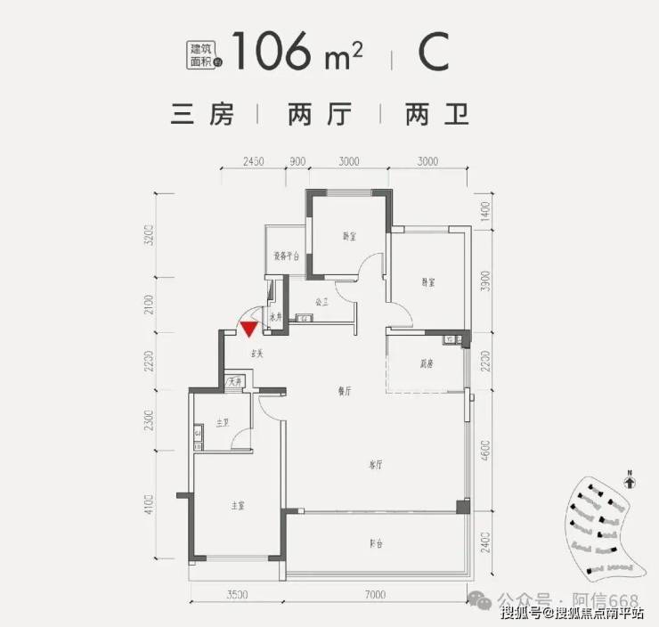 3、106平米三房两卫,C户型