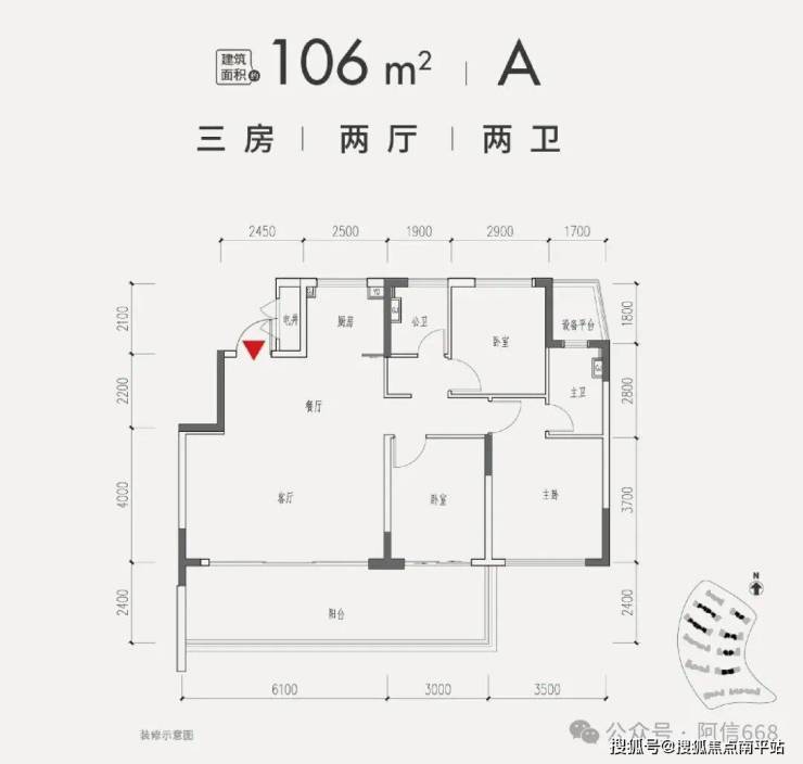 1、106平米三房两卫 A户型