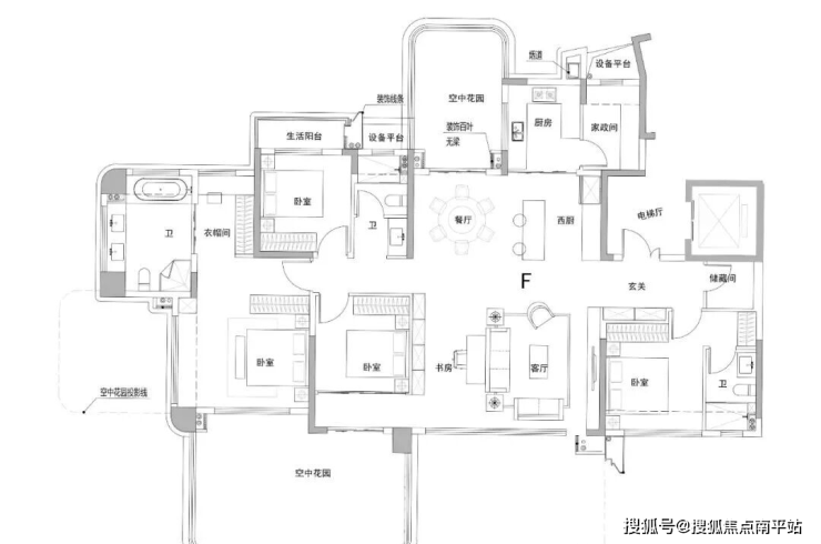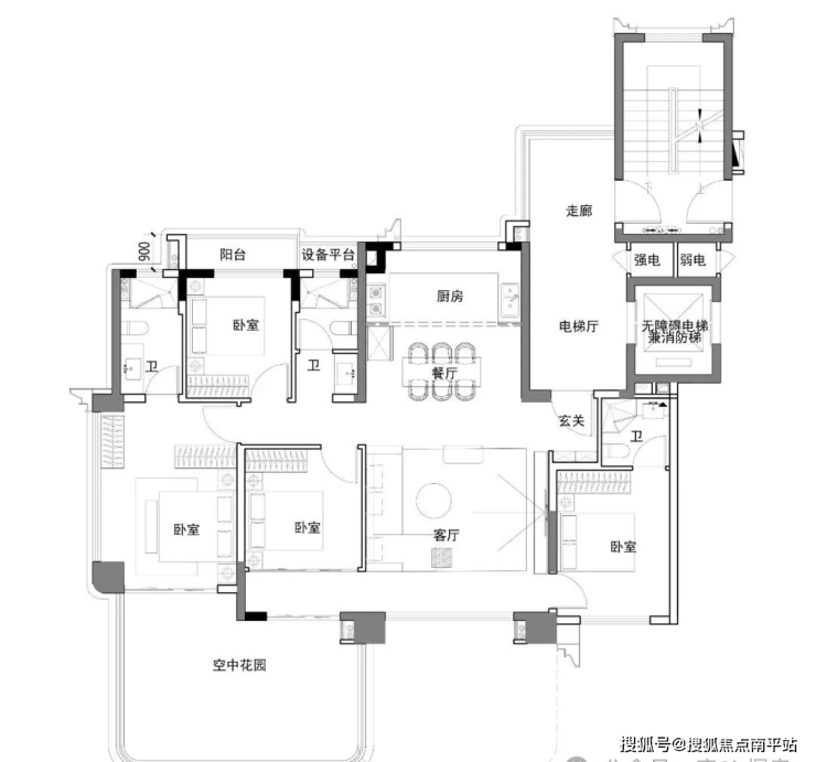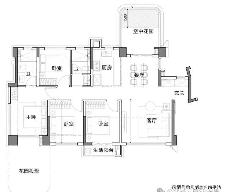 主卧配备超大空中花园(鲤悦的升级版),次卧及客厅还有超长的跑马阳台。