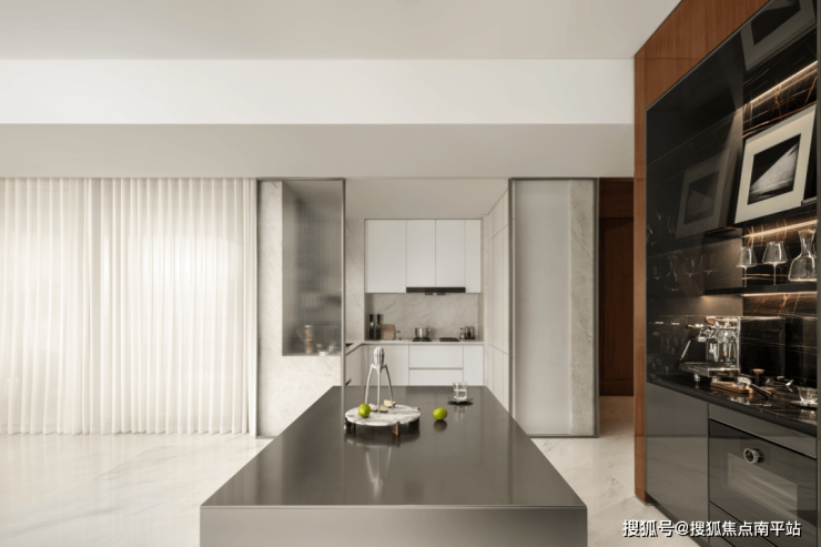 品质丨高遮光窗帘隔光降噪,多重水处理 + 零冷水系统,3.6 米层高更舒适,优质饰材搭配食品级岩板台面。