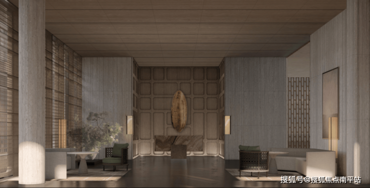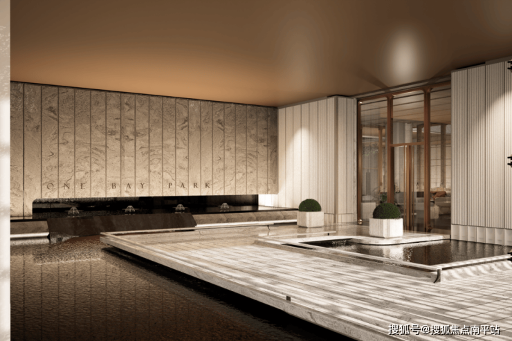 2. 精致隐奢的归家体系丨精细化设计的入口庭院标识墙,实现细胞肌理的有机延续。阔绰车马院与酒店式落客区以从容礼序迎接归家。双层通高的首层大堂空间格局、酒店式接待台奠定奢华,并巧妙转译外立面拱形元素,运用暖色系材质,塑造极具经典美学的归家第一空间。