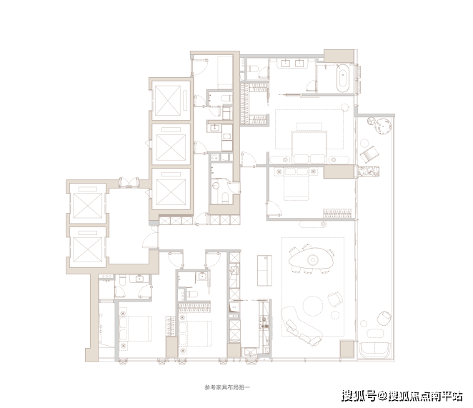 ▲建面约305㎡户型——参考布局1