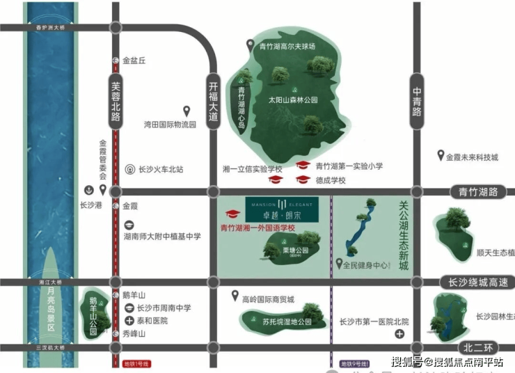 路网纵横:周边中青路、青竹湖路等城市主轴形成两横三纵路网,近邻地铁9号线(规划中)、地铁1号线延长线快速出行;