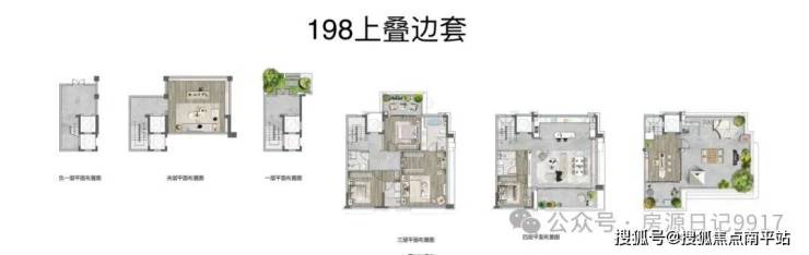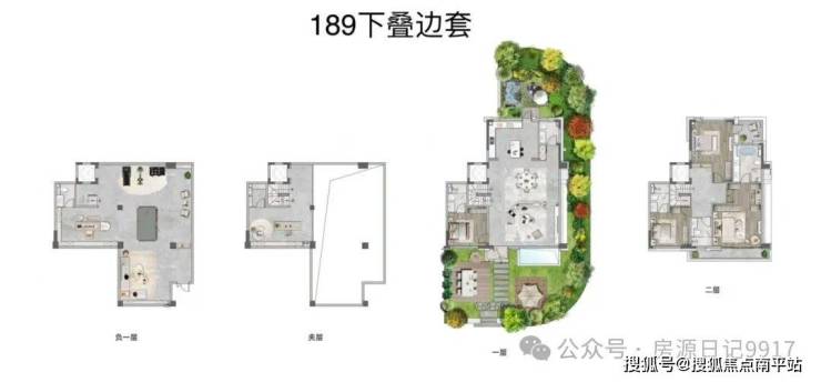 189㎡4层下叠院墅(院落爱好者必入):独门独户独梯独院配置,南向花园+北侧庭院打造"前庭后院",院子面积达60-80㎡。5.6米挑高地下会所可改双层空间,6.7米面宽会客厅连全景落地窗,推窗就是绿意;