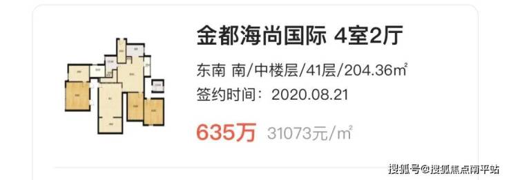 同安环东海域——金都海尚国际,204.06平4房,成交单价16172元/平,成交总价330万;2020年同户型成交单价31073元/平,成交总价635万;5年时间,总价调整了305万。