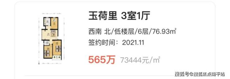 思明莲花一村——玉荷里,76.51平3房,成交单价27056元/平,成交总价207万;2021年同户型成交单价73444元/平,成交总价565万;4年时间,总价调整了358万。