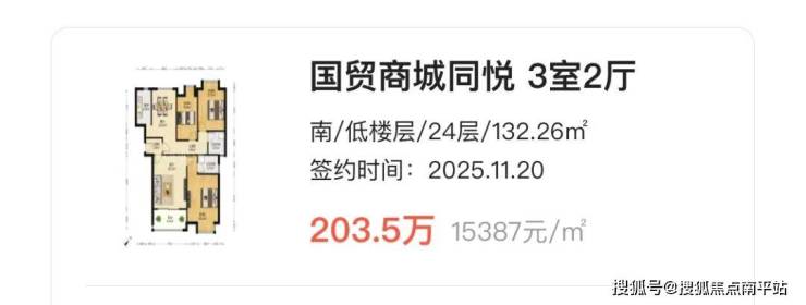 集美桥头——国贸商城同悦,132.26平3房,成交单价15387元/平,成交总价203.5万;2021年同户型成交单价31920元/平,成交总价422.2万;4年时间,总价调整了218.7万。