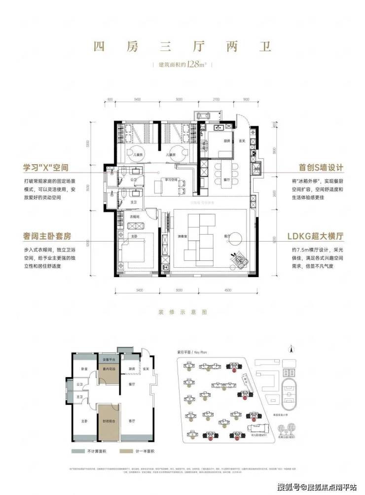对于有多个孩子的家庭,装修空间更从容,可以针对性设计,更利于小朋友的学习和生活,得房率在约100%-110%之间。