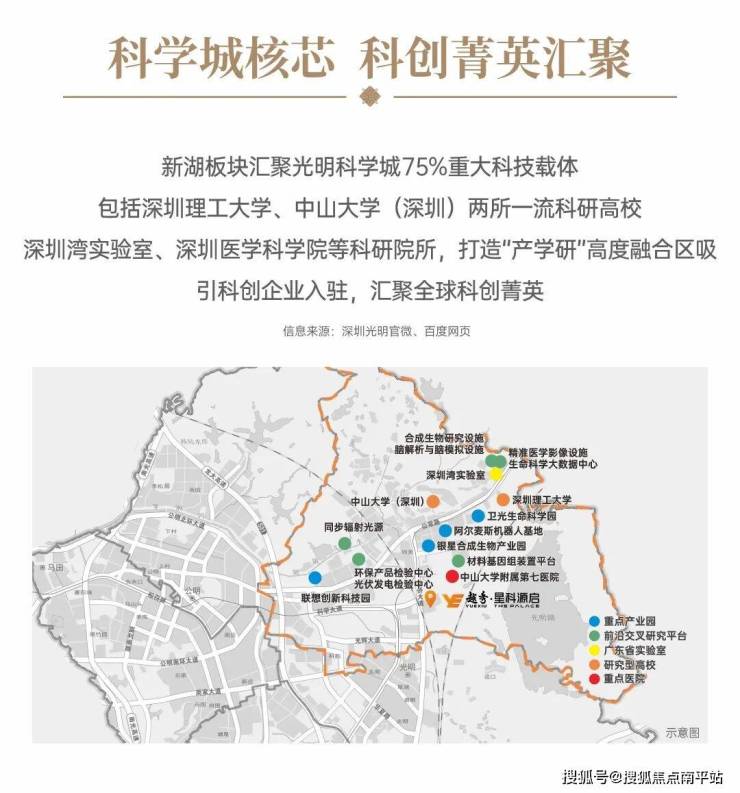 区域发展带来高净值人群,推动住房需求。越秀星科源启地段优越,房产增值潜力大。新湖板块聚集光明科学城75%科技载体,包括深圳理工大学、中山大学(深圳)等高校和科研机构,促进“产学研”融合,提升区域价值。项目位于新湖中心,构成“生活黄金三角”,便利享受三区配套,实现工作、生活、休闲的便捷切换。