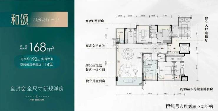 2#共19套建面168㎡户型,得房率约114%,参考价格10900-11900元/㎡;