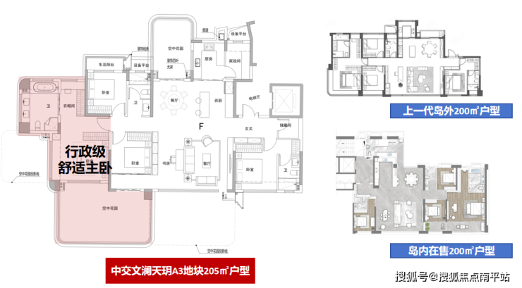相比较岛外上一代200㎡户型和岛内在售的五缘湾200㎡户型,可以说目前文澜天玥205㎡舒适度更高,奢华感更极致,同时也实现了更纯粹的四代宅空中海景花园体验。