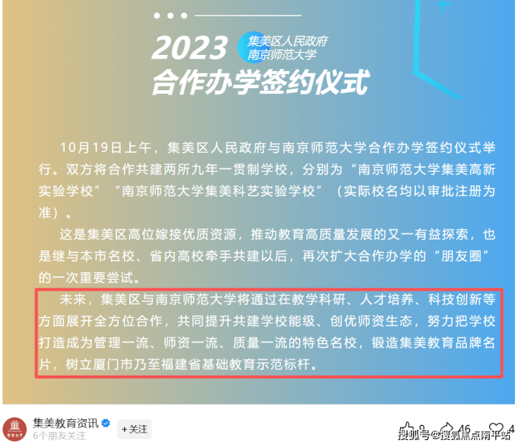 我们去年撰文写过,自从东方快乐岛被收回以后,集美东部新城彻底解脱发展的掣肘,将成为集美区未来10年重点发展的主心骨。为了这个主心骨,不仅地铁嘉庚体育馆站成为地铁6号线和9号线交汇点,将于2027年通车,板块内教育也将高规格升级。