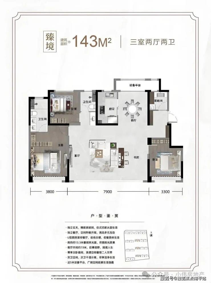【人性化细节】:U型厨房、干湿分离卫浴、独立家政间,生活更高效;