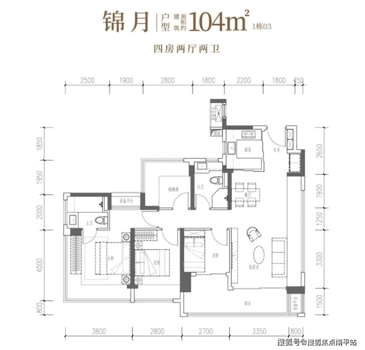 锦月·建面约104㎡4房2厅2卫:南向四开间,6米阳台引景入室,自此生活融于风景