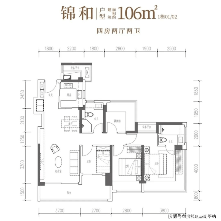 锦和·约106㎡四房两厅两卫:南向四开间,一线园林景观,自在奢想