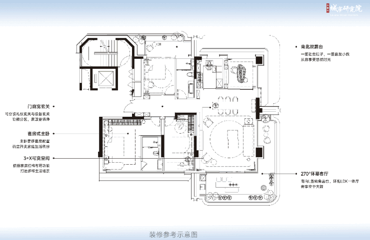 2、125㎡奇数层户型:北侧露台与卧室相连接,可作为男女主人的私密交流空间,后期瑜伽健身、品酒赏月、摇椅发呆都很惬意。
